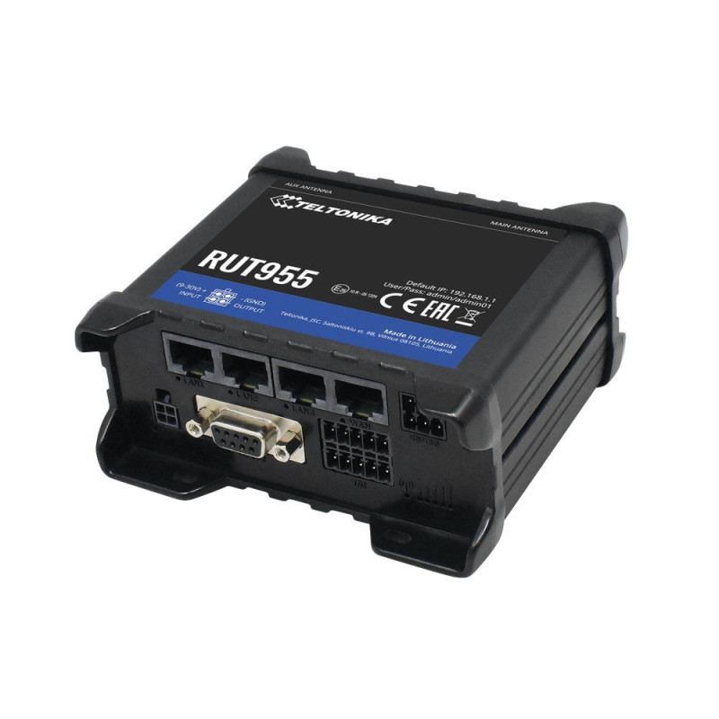 RUT955 Router LTE Teltonika 150 Mbit/s 4 Puertos Ethernet 10/100 Mbps RS232 Soporte para 2 SIM